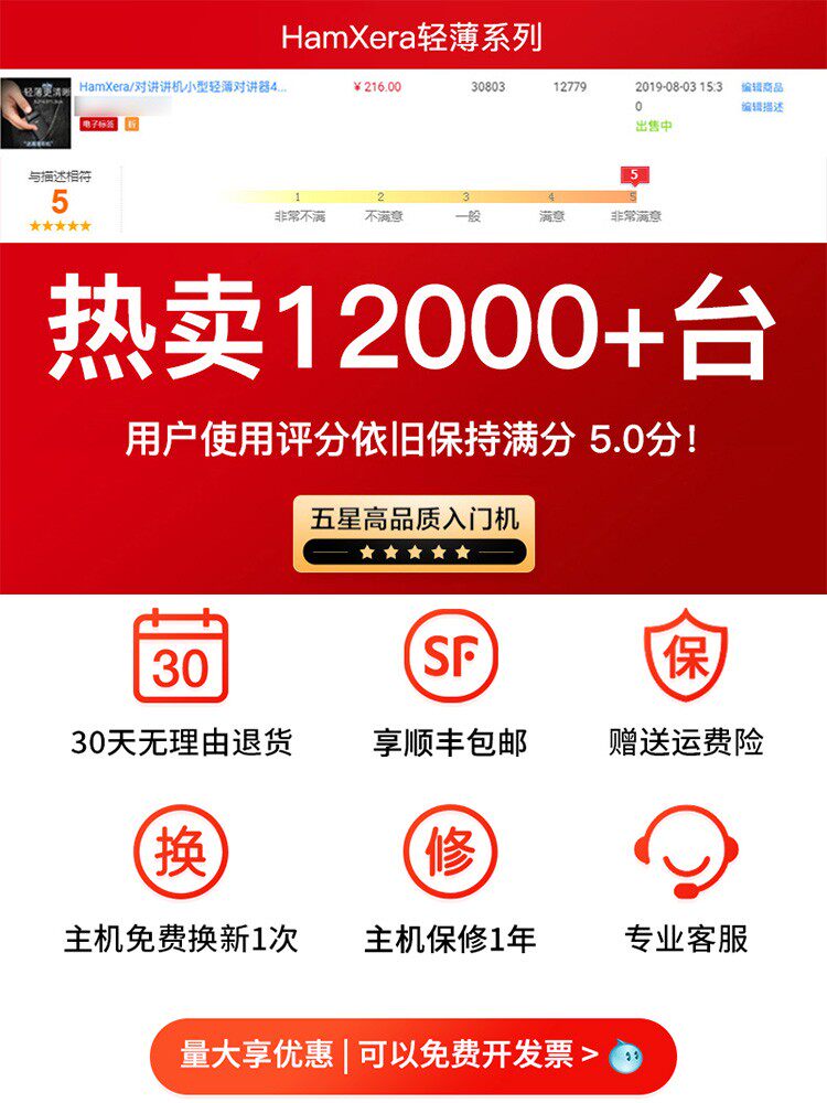 HamXera (pair price) small walkie-talkie small 5W light and thin hand Taiwan wine rice shop mini walkie talkie