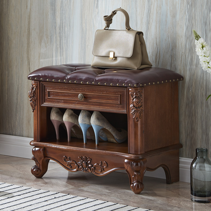 American light luxury leather soft bag solid wood replacement shoe stool home with Nordic minimal storage bench in the door can sit on shoe stool