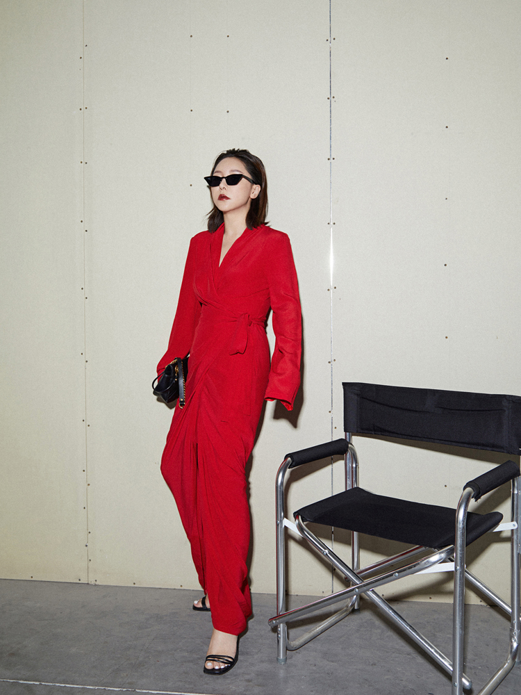 Boss Z RO acetate tie wrap dress two-piece three-dimensional cutting long-sleeved wrap skirt female