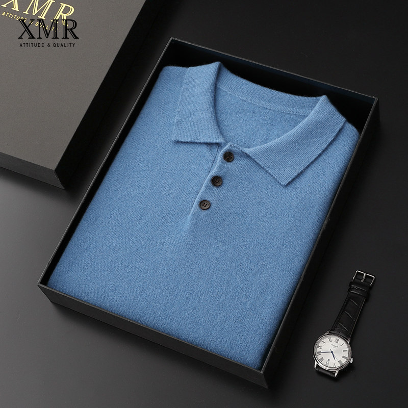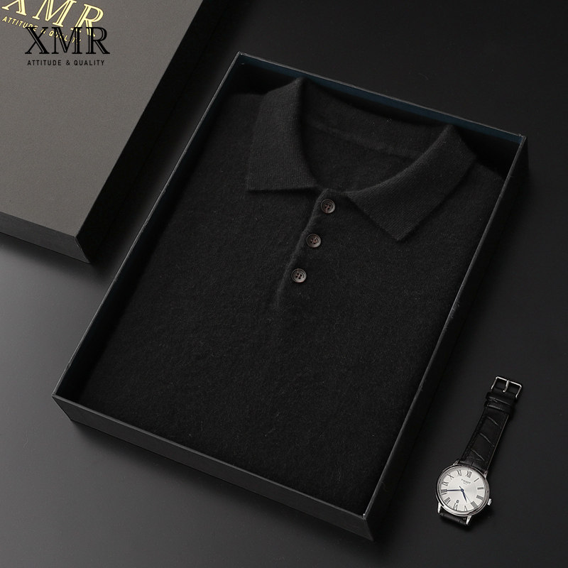 2022 spring new cashmere sweatshirt male 100 pure cashmere short sleeve T-shirt half sleeve sweater collar Polo shirt