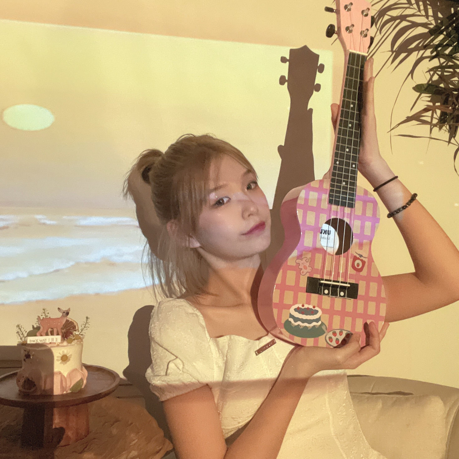 Yurkri girls'beginners' entry-level 23 inch children's male inches pink Guitar High Face Value Flagship Store