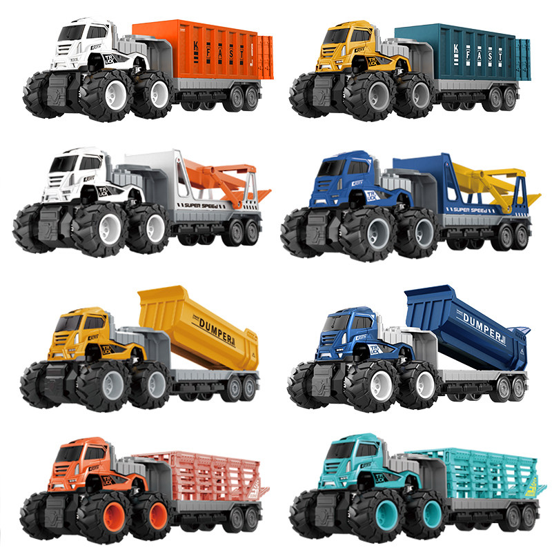 Orange container truck (alloy head) green container (alloy head) white double decker (alloy head) blue double decker (alloy head) yellow carrying car (alloy head) blue carrying car (alloy head)