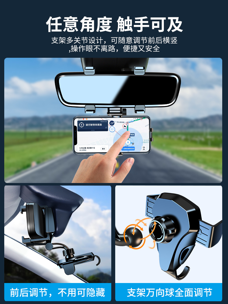 Mobile phone car mobile phone bracket rearview mirror car mobile phone rack fixed mirror special support driving 202 new navigation clip