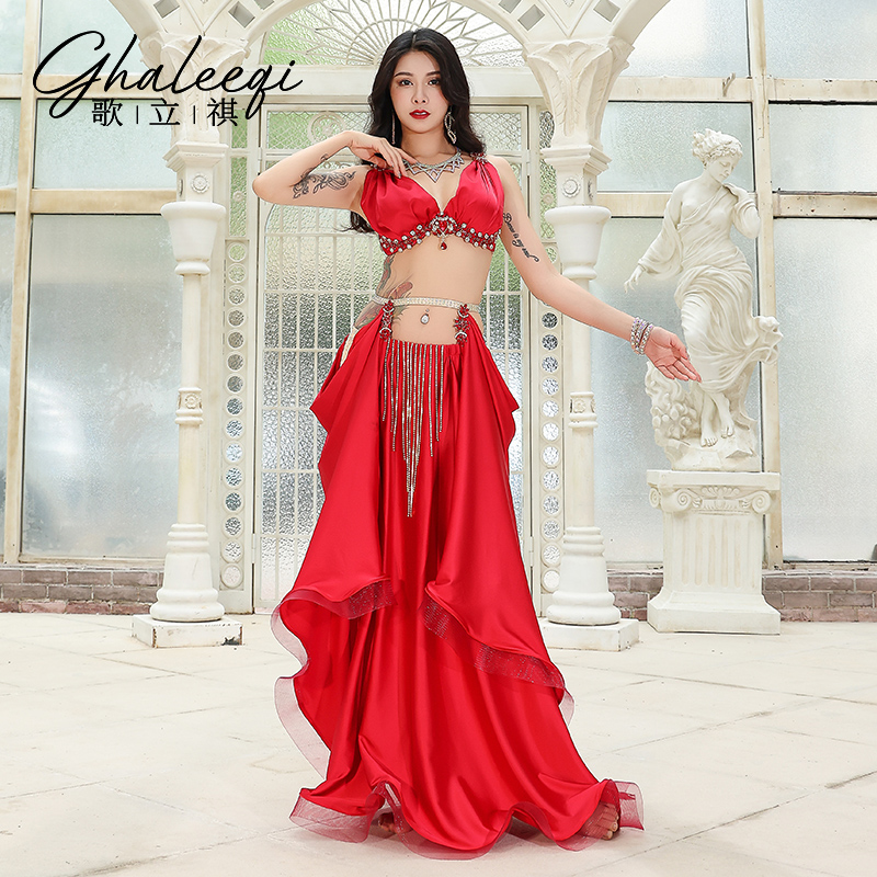 Song Liqi Belly Leather Dance Inlaid Drill Flow Su Retro Performance Out of 2022 Spring Summer's new Grand Skirt Swing's Sister Department Performance Suit