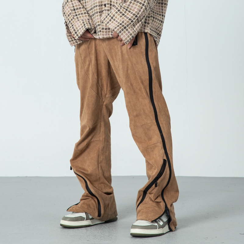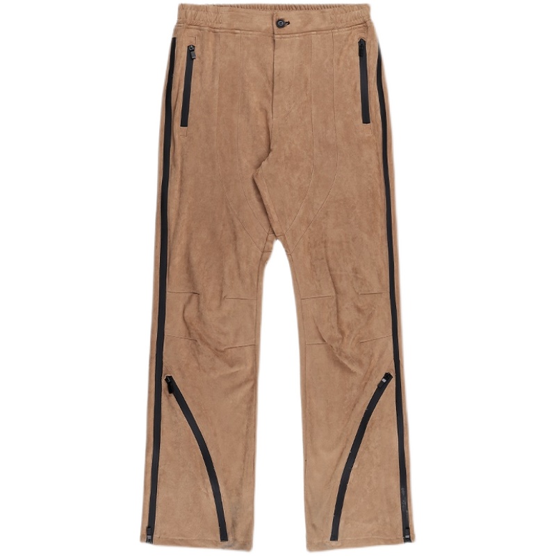 New factor 21FW Guochao thickened suede Leather Laced Loose Straight Drum Long Pants Trendy Hip Hop Horn Casual Pants Couple