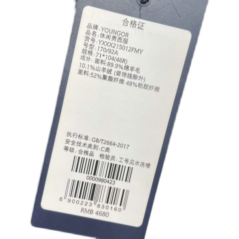 Counter 4680 yuan Youngor suit Wool cashmere importEd Zegna fabric male 215012FMY