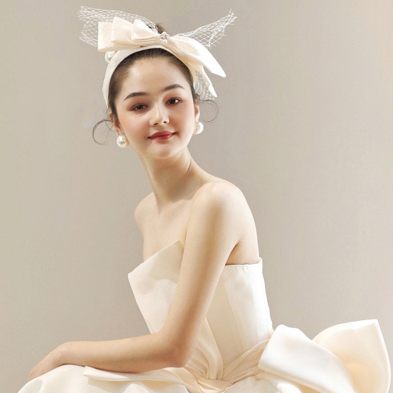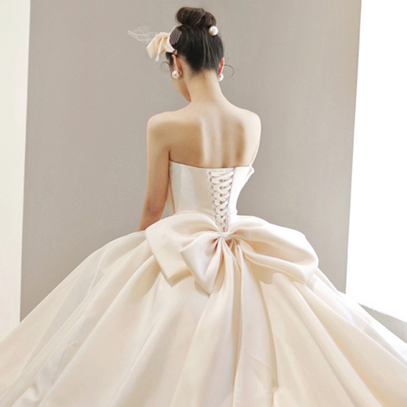 Long sleeve French light wedding dress 2022 new summer senior bride master yarn little tail palace satin