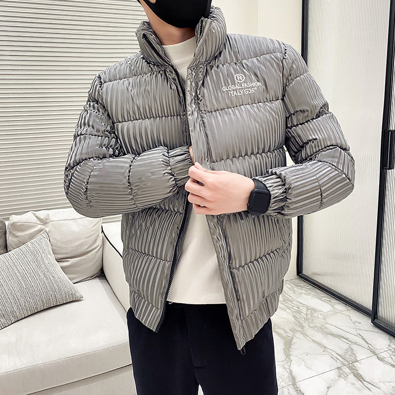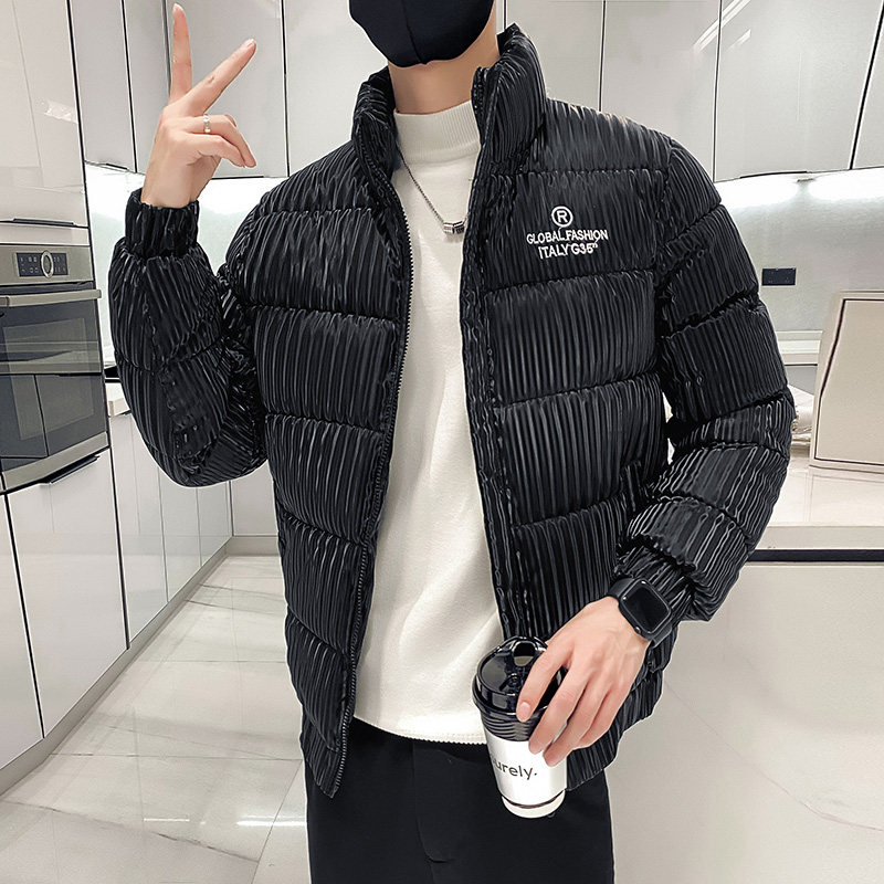 Bright face stand collar cotton coat men's winter 2021 New Tide brand senior sense men's ruffian handsome cotton jacket