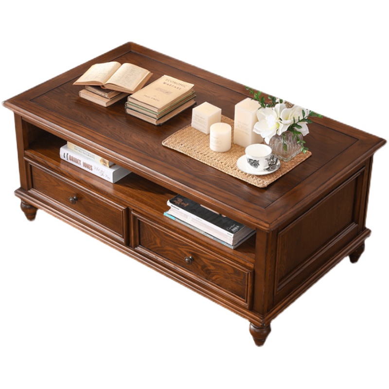 American solid wood tea table Home living room small family style brief modern sofa small table white wax wood for old retro square tea table