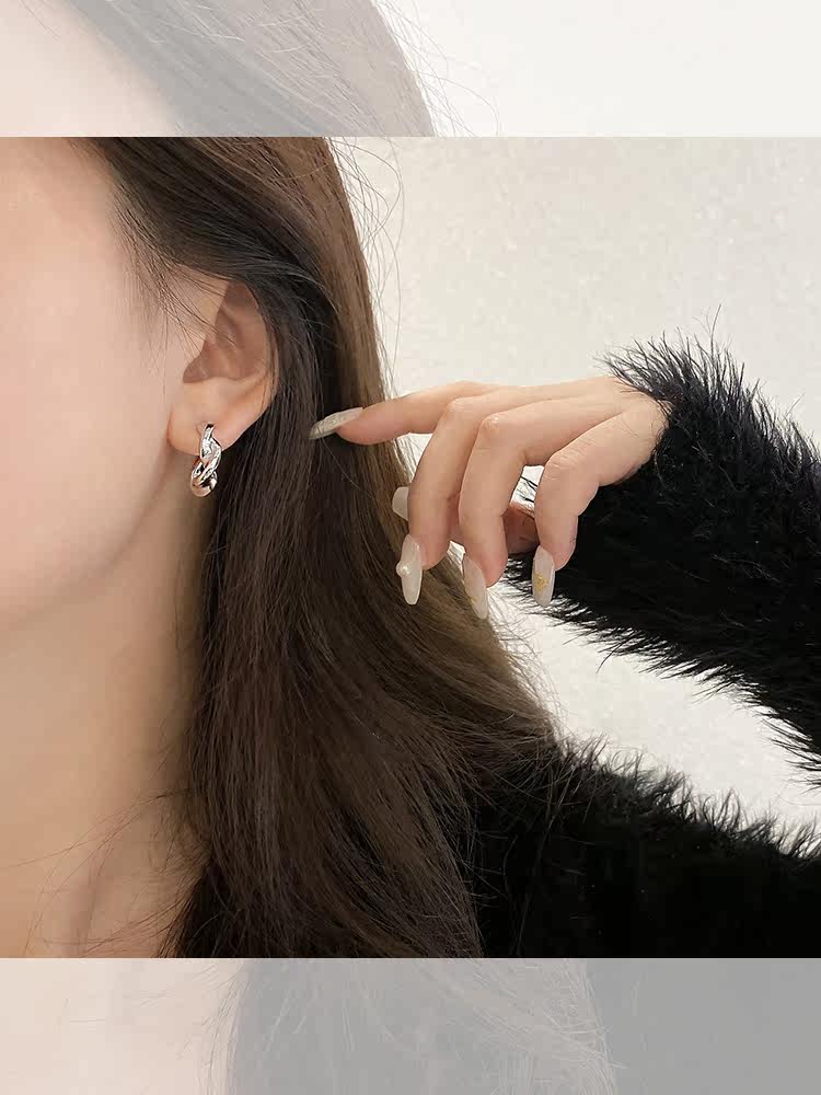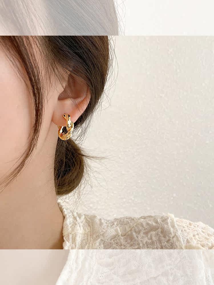 Spiral twist metal earrings 2021 new trendy Korean temperament internet celebrity Dongdaemun earrings design sense earrings