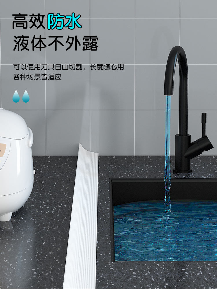 Soft silicone self-adhesive water barrier kitchen sink edge bathroom wash wash face counter surface water barrier water barrier bar