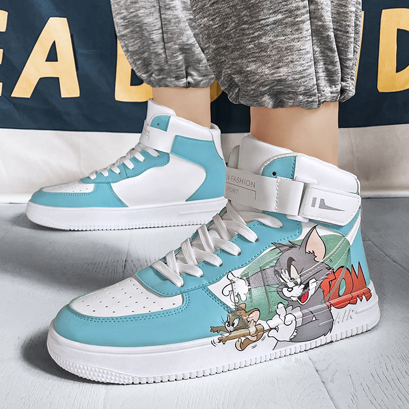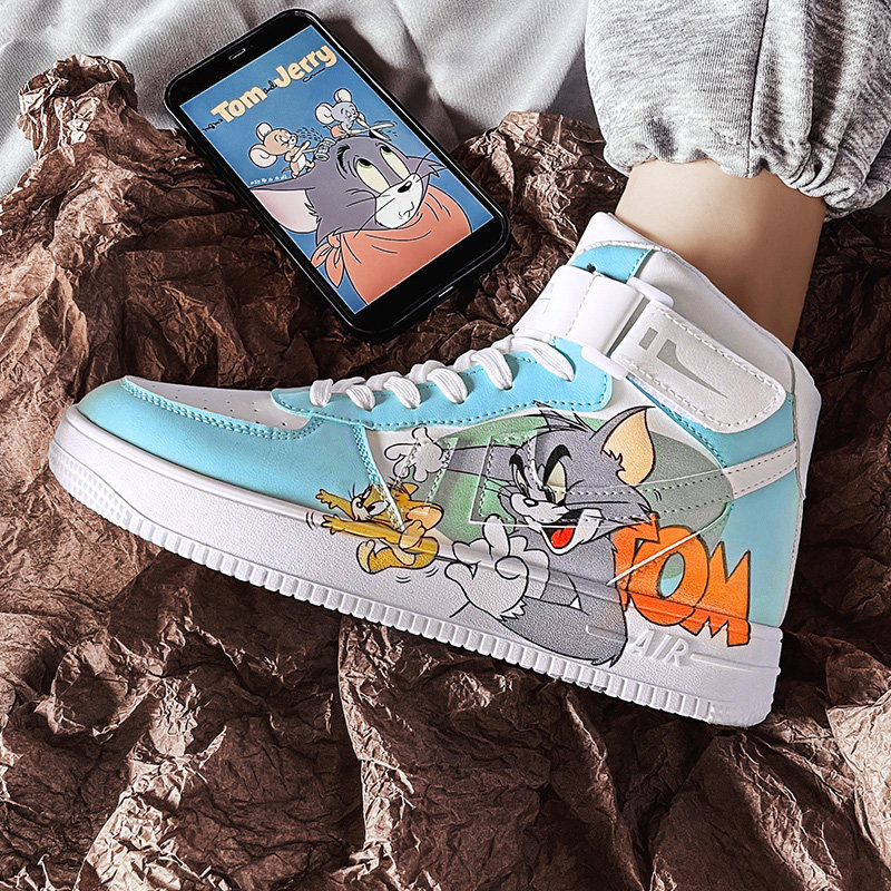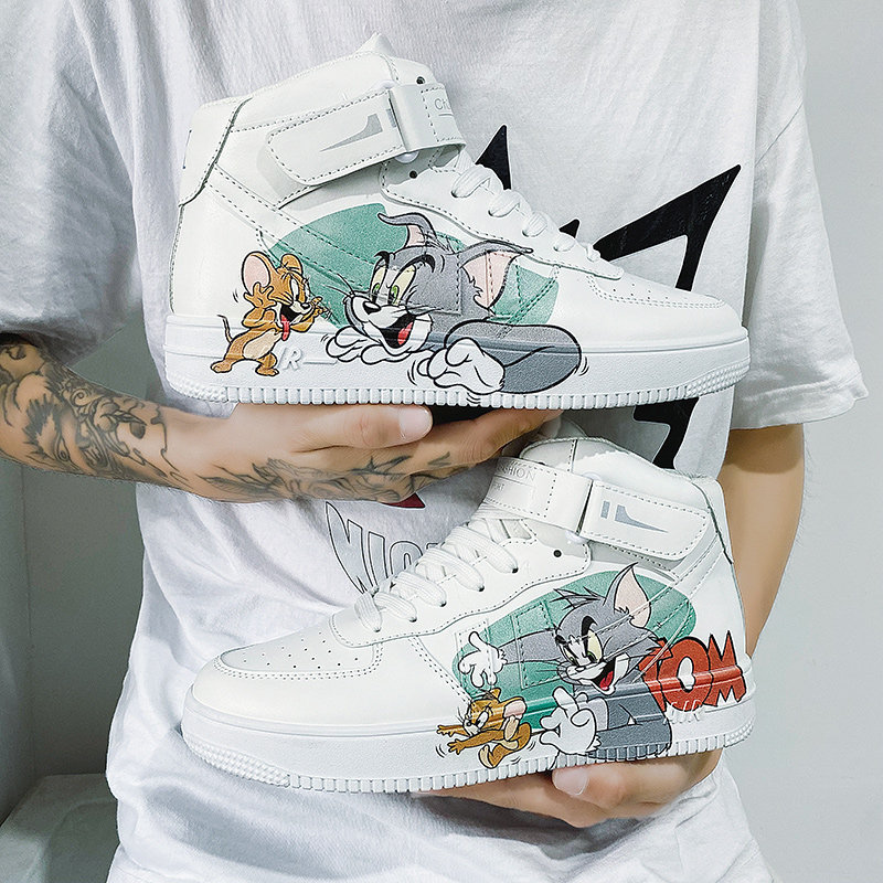 Tom and Jerry anime joint shoes men's 2022 summer high-top shoes aj Air Force No. 1 board shoes couple white shoes