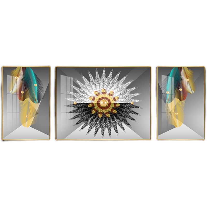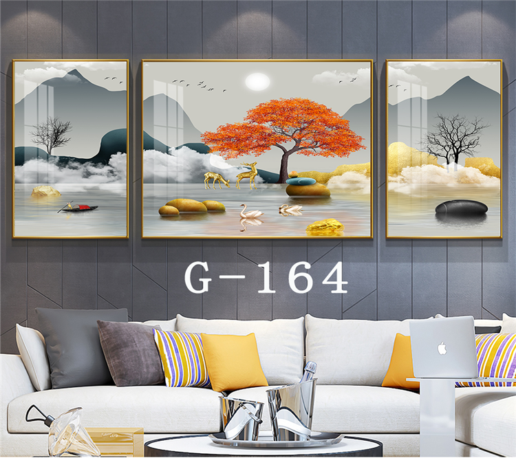 Modern minimalist atmospheric triptych hanging painting inlaid diamond crystal porcelain painting sofa background wall painting light luxury living room decoration painting