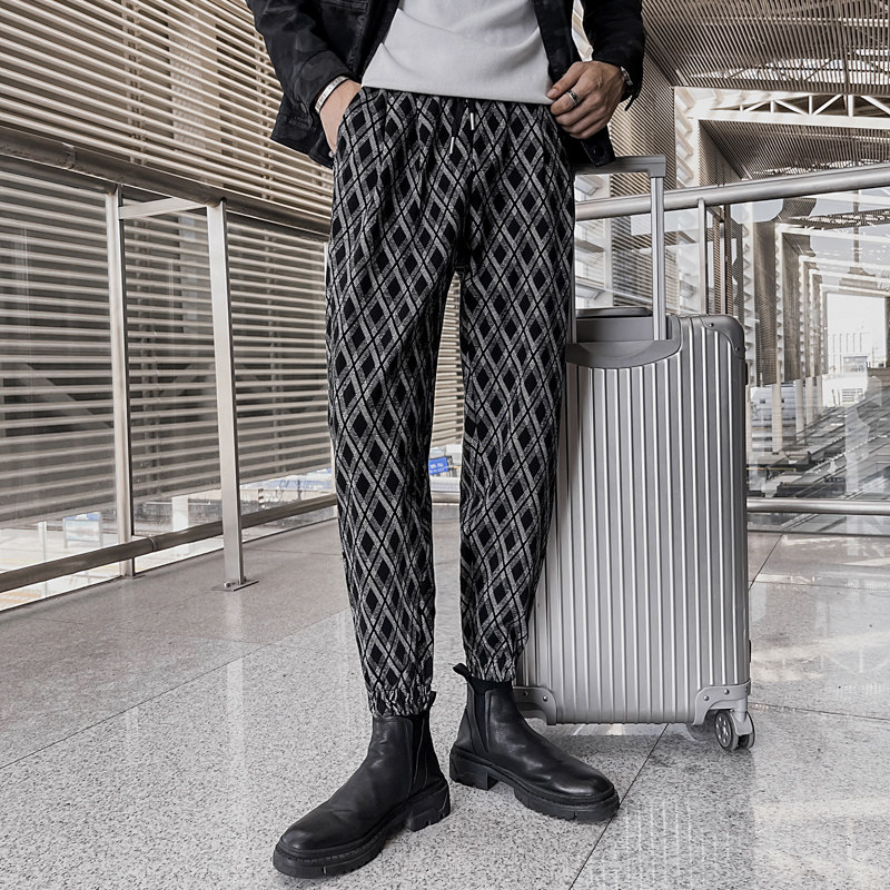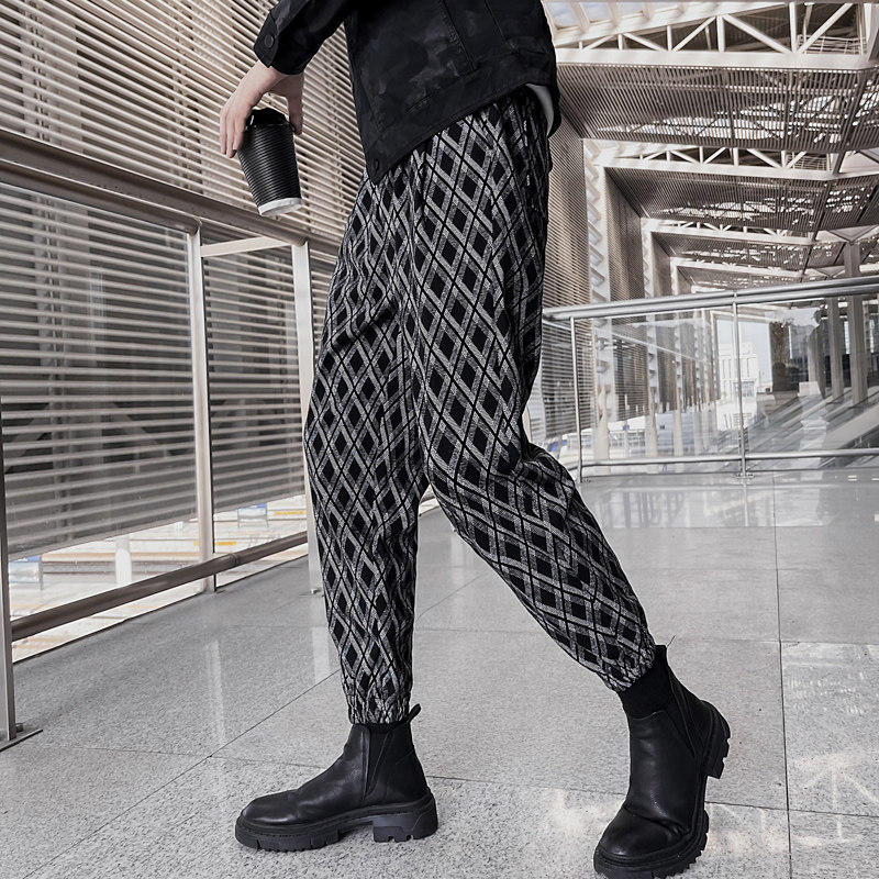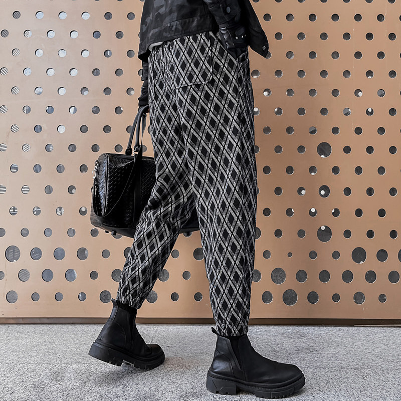 Net Red Tide brand Lingge casual pants men's autumn and winter thick pants loose leg pants Korean version of the trend Haren pants