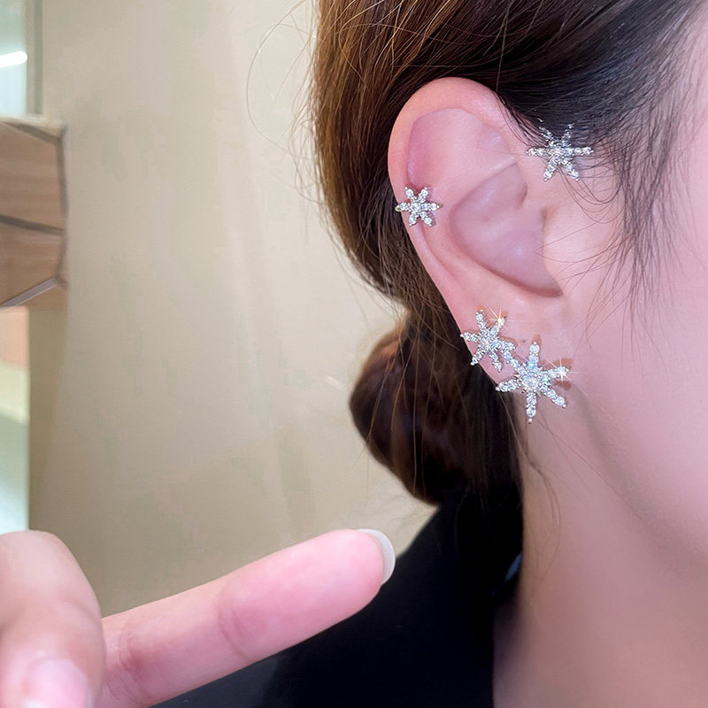 Snowflake ear hanging six manger jewel earrings Lin Yun-tong Superior Sensation Earbone Clip Earrings without earhole Little crowdsourced
