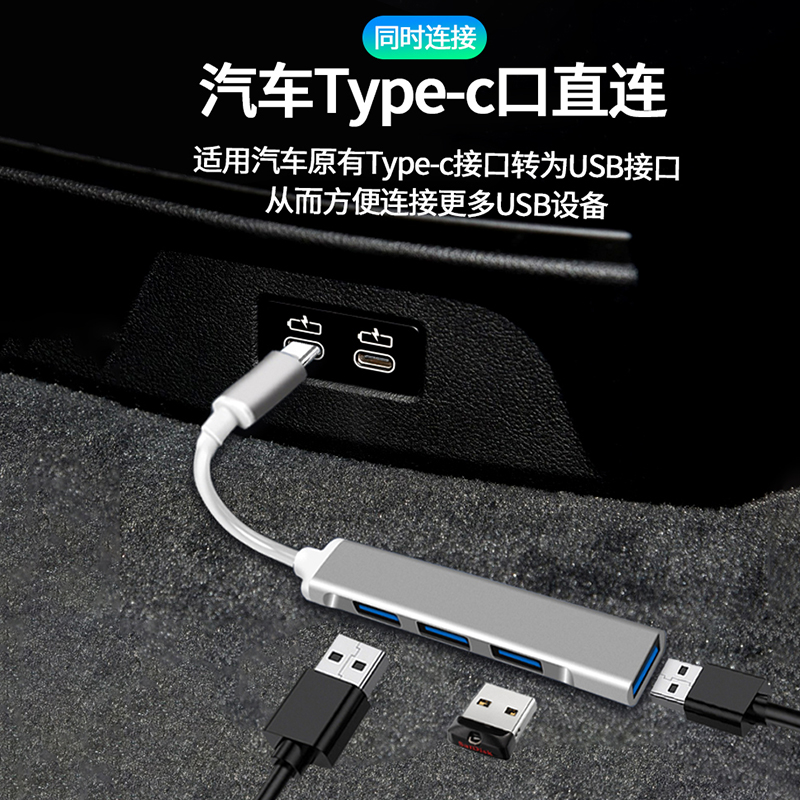 (grey) USB turn 4 USB connectors ★Car phone tablet notebook Universal (silver) USB turn 4 USB connectors ★Car phone tablet notes