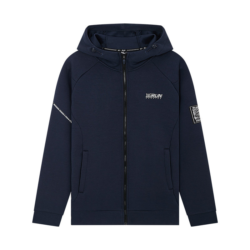 361 leather pants thick cotton T men's 2021 autumn and winter New hooded cardigan men's casual trend sports top