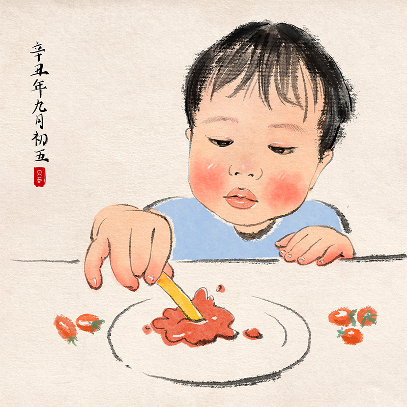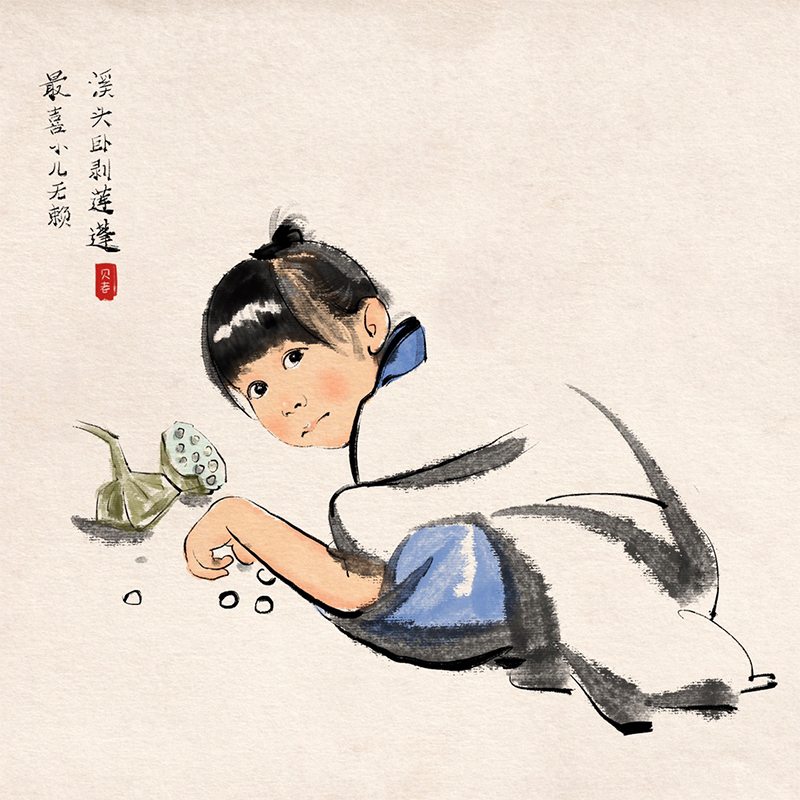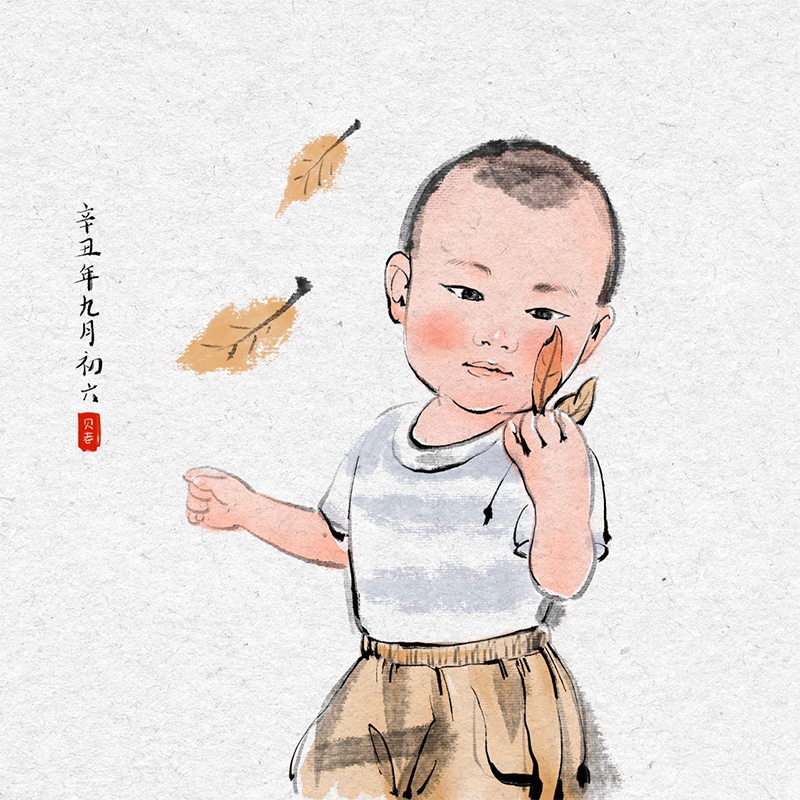 Hand-painted cartoon Q-version live-action photo to Chinese painting style ink painting couple head portrait children's illustration comic customization