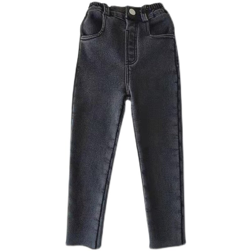 Girl's integrated cashmere jeans 21 Winter Korean version of female baby Supper elastic thickened Ocean sends small foot long pants 100 lap