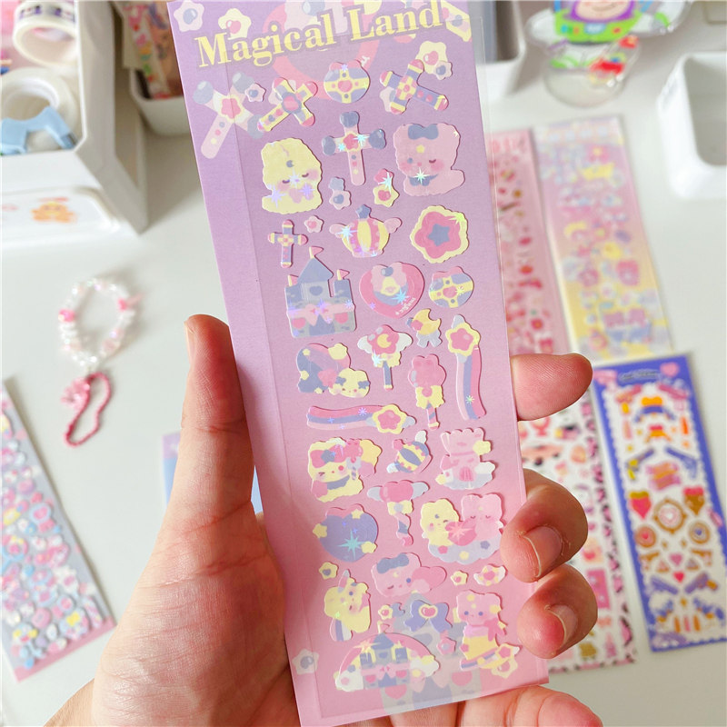 Han Prints Castles Rabbit Laser Bronzing Card Stickers Cute Teenage Hands Account Small Card DIY Decorative Material Sticker