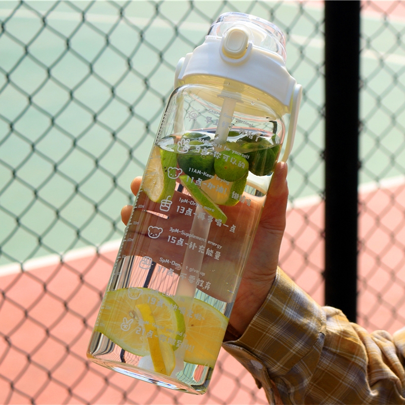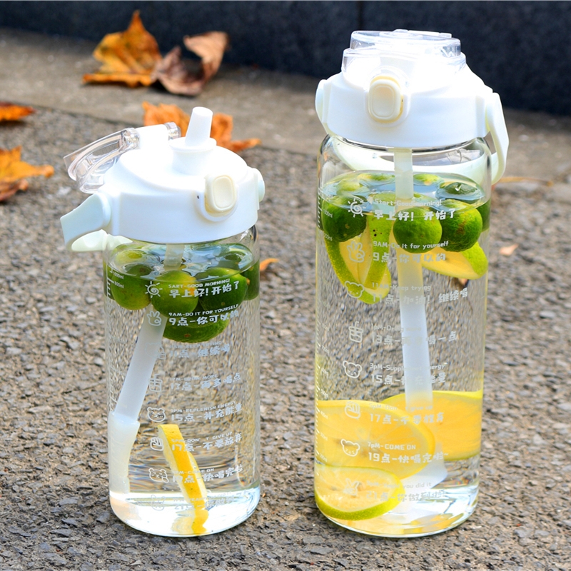 Large-capacity glass with scale drinking water target strap straw water cup bouncing high borosilicate cup for male and female students