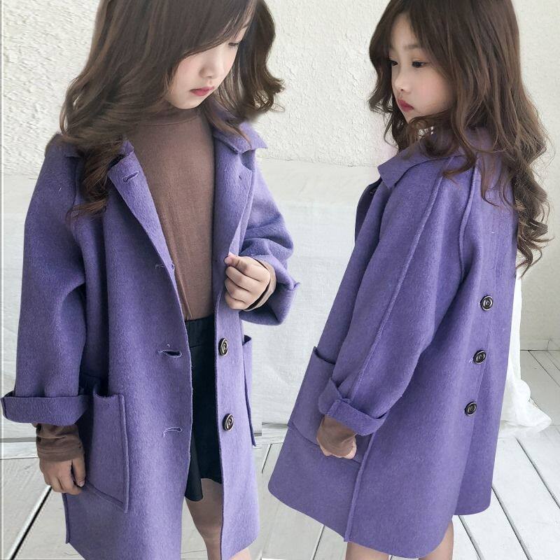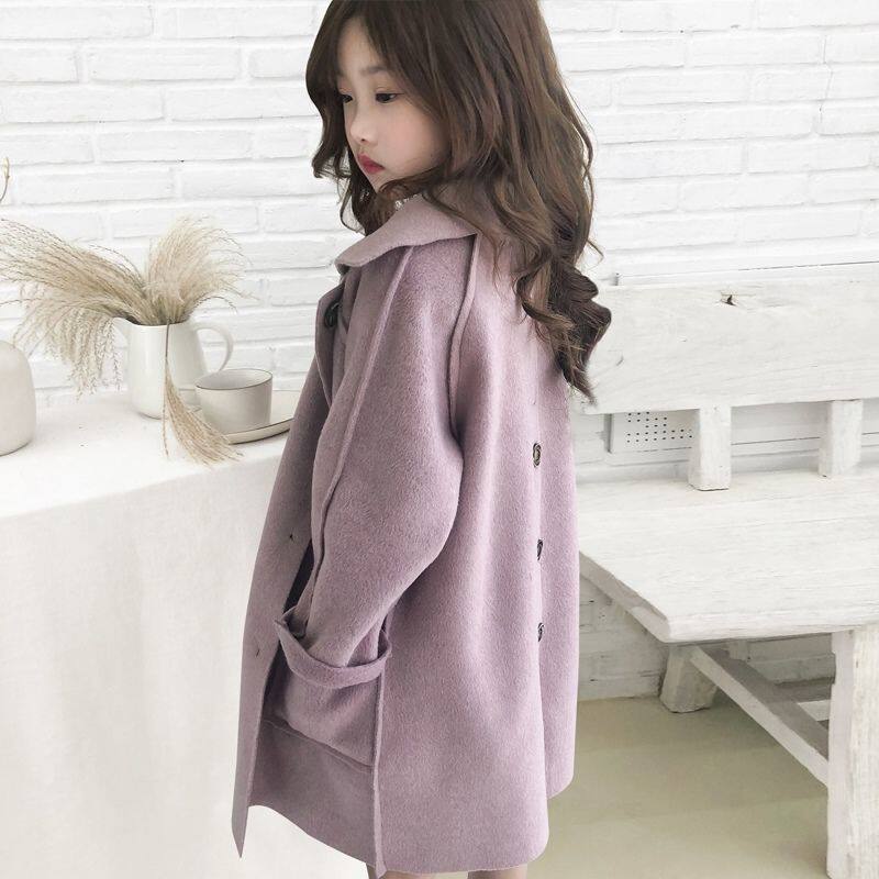 Girls autumn and winter 2022 new double-sided cashmere wool Korean version of the big children's coat spring and autumn mid-length woolen coat