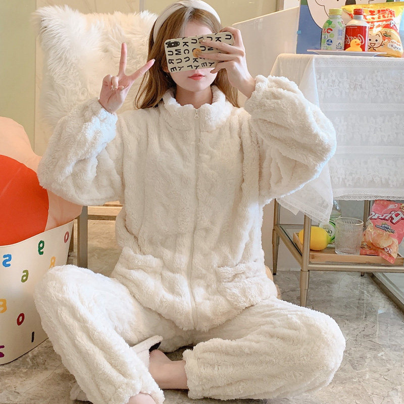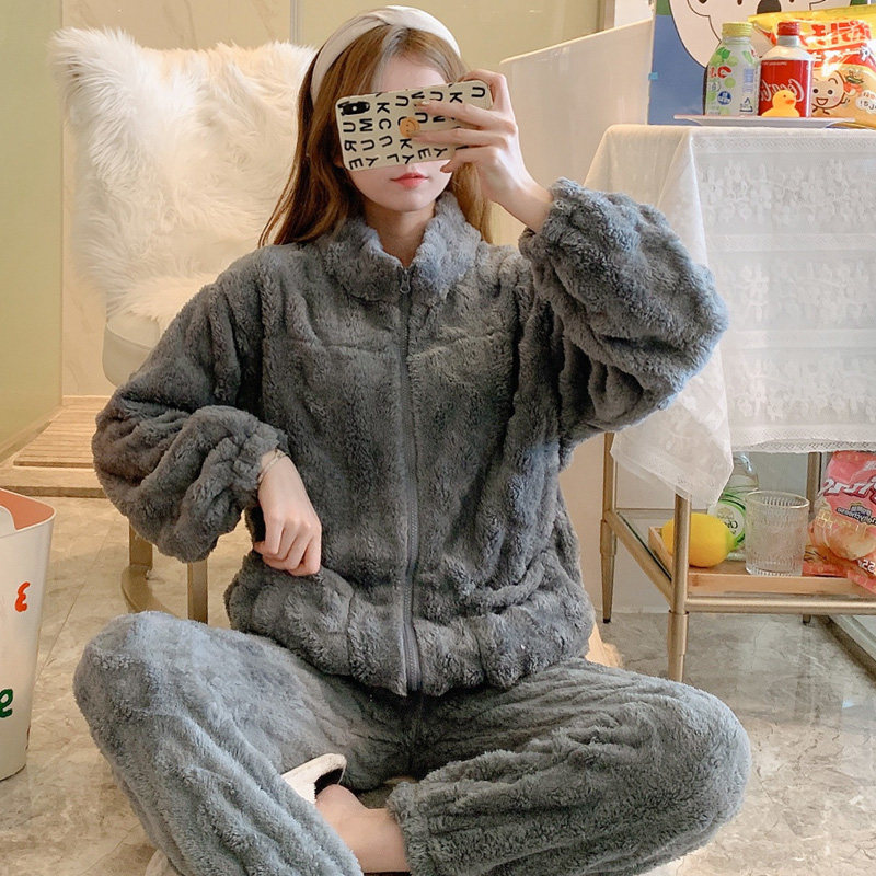 Laced Pyjamas Woman Autumn Winter Plus Suede Thickened Coral Suede 2021 New Flannel Suede Long Sleeve Suit Home Dress