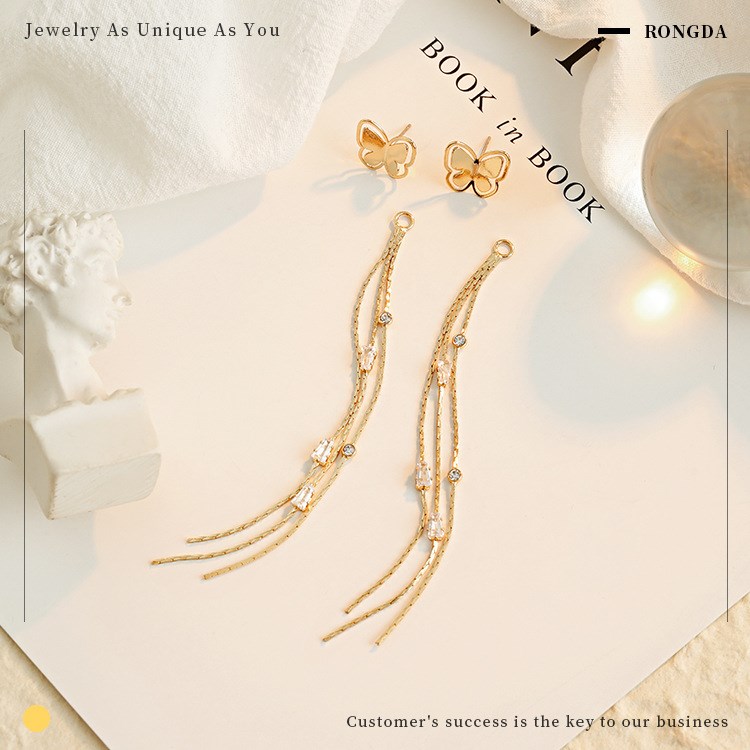 Qingdao Rongda Huixin Arts & Crafts Co., Ltd. Korean Fashion Earrings Asymmetrical Long Tassel Earrings 2021