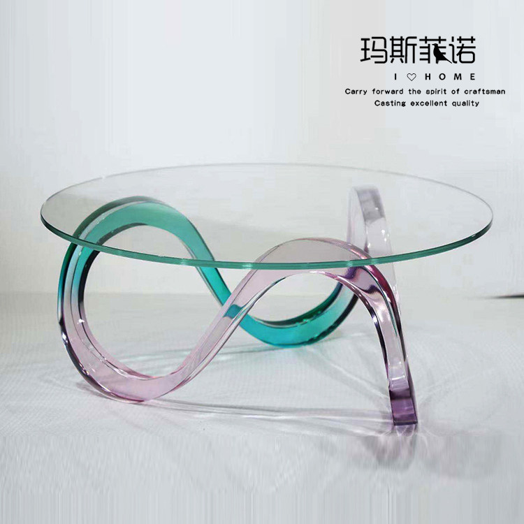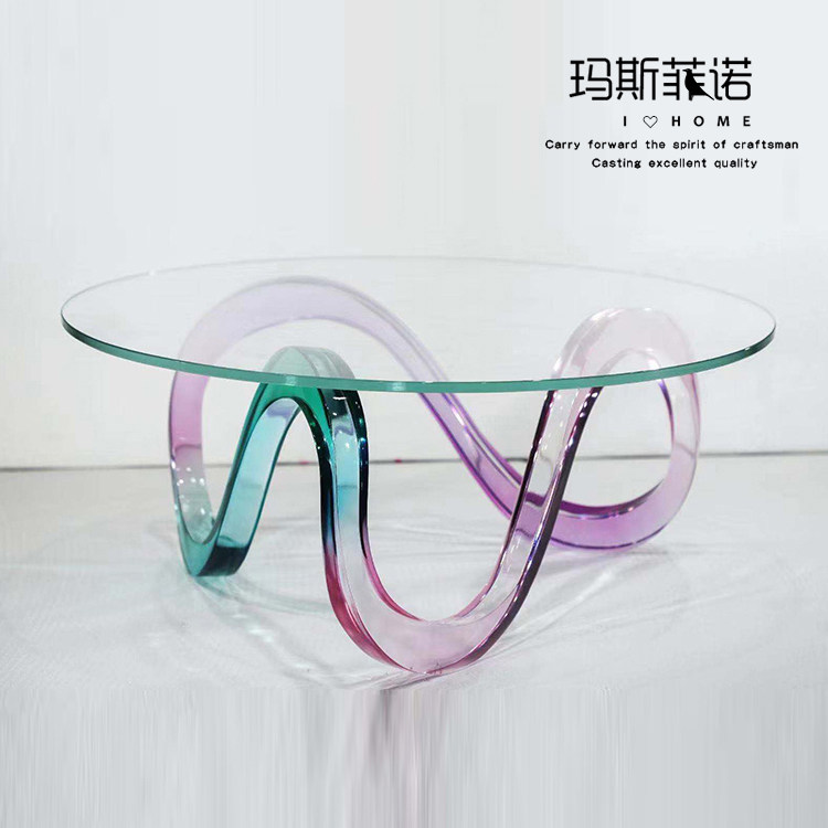 MSFN Modern Simple Design Creative Transparent Resin Rainbow Coffee Table Alien Tea Several Villa Model Room Hotel
