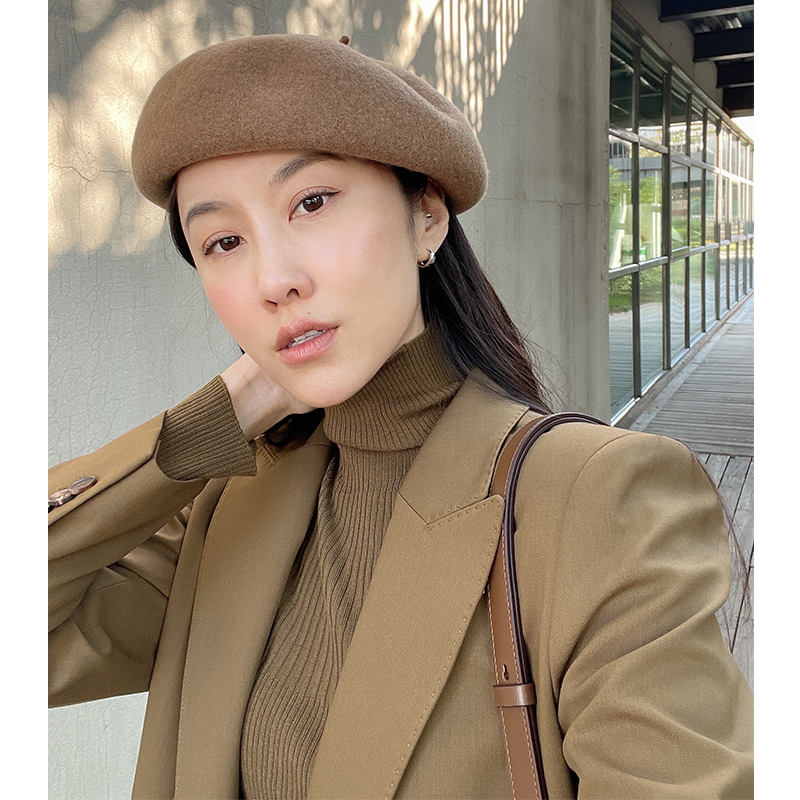 (Recommended by Li Ai) Crochet three-color pure wool painter's hat beret 2021 new autumn and winter all-match