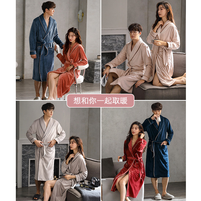 Couple nightgown men's bathrobes women's pajamas autumn and winter flannel thickening plus velvet coral velvet mid-length spring and autumn models