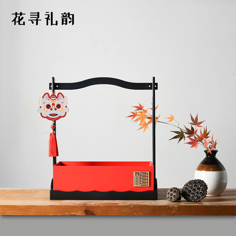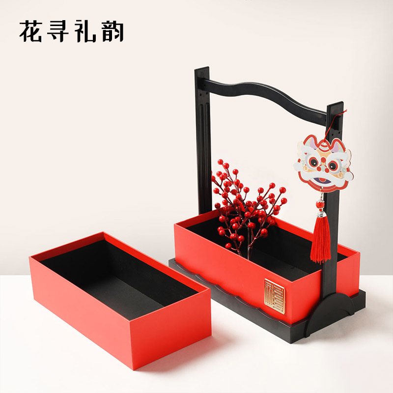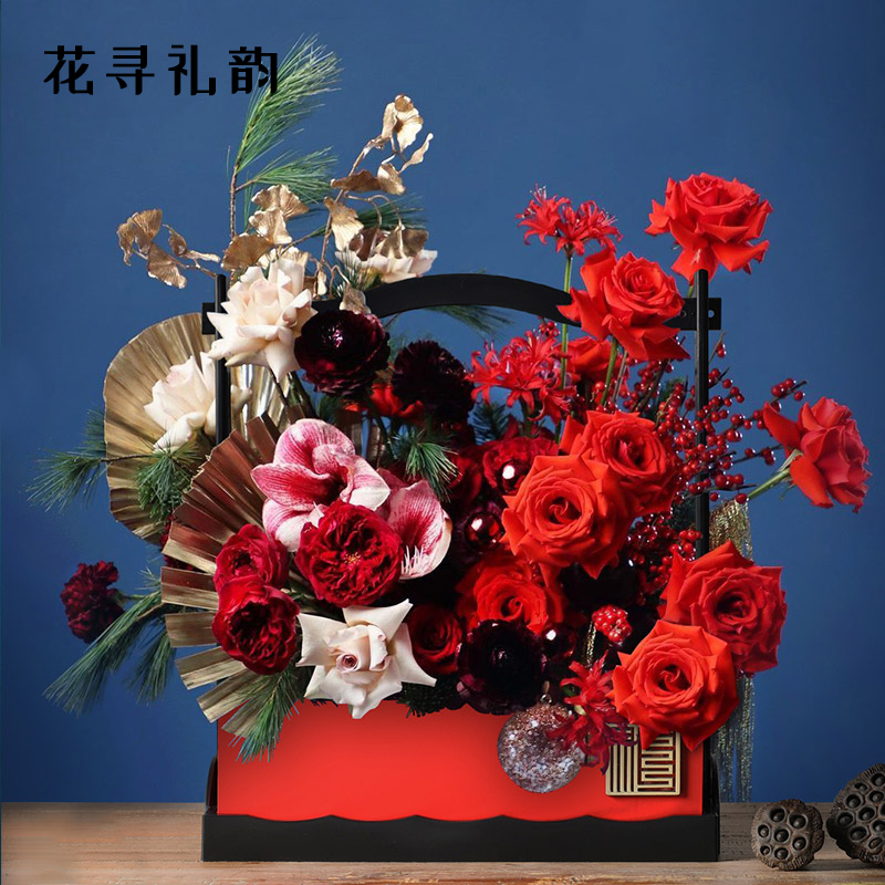 Flowers and gifts, Chinese style, happiness, happiness box, New Year's hand-held flower arrangement box, flower bouquet packaging box, flower art gift box
