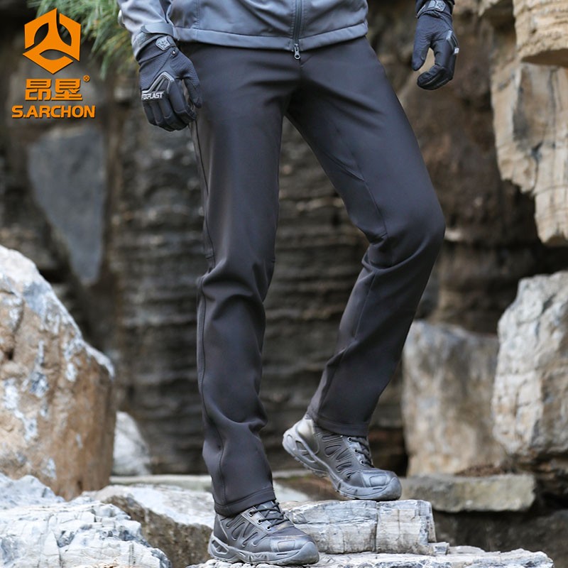 Archon IX10 soft shell assault pants men's winter plus velvet tactical pants elastic slim outdoor hiking pants business pants