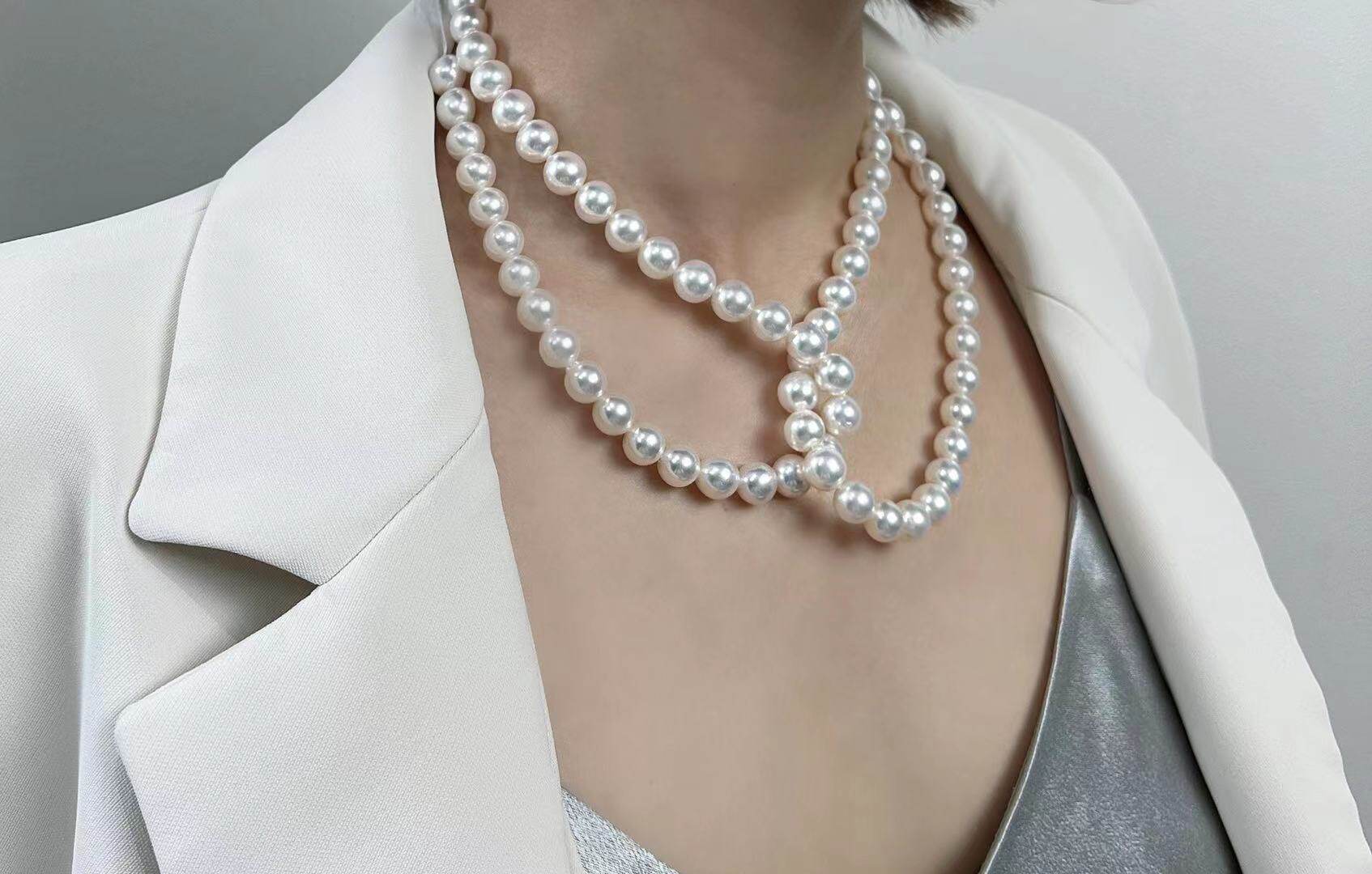 Japanese Agu Uk Akoya Natural Seawater Pearl Necklace Zhengyuan Bright Light 9 5-10 No Toning Aussie White Flat Substitute