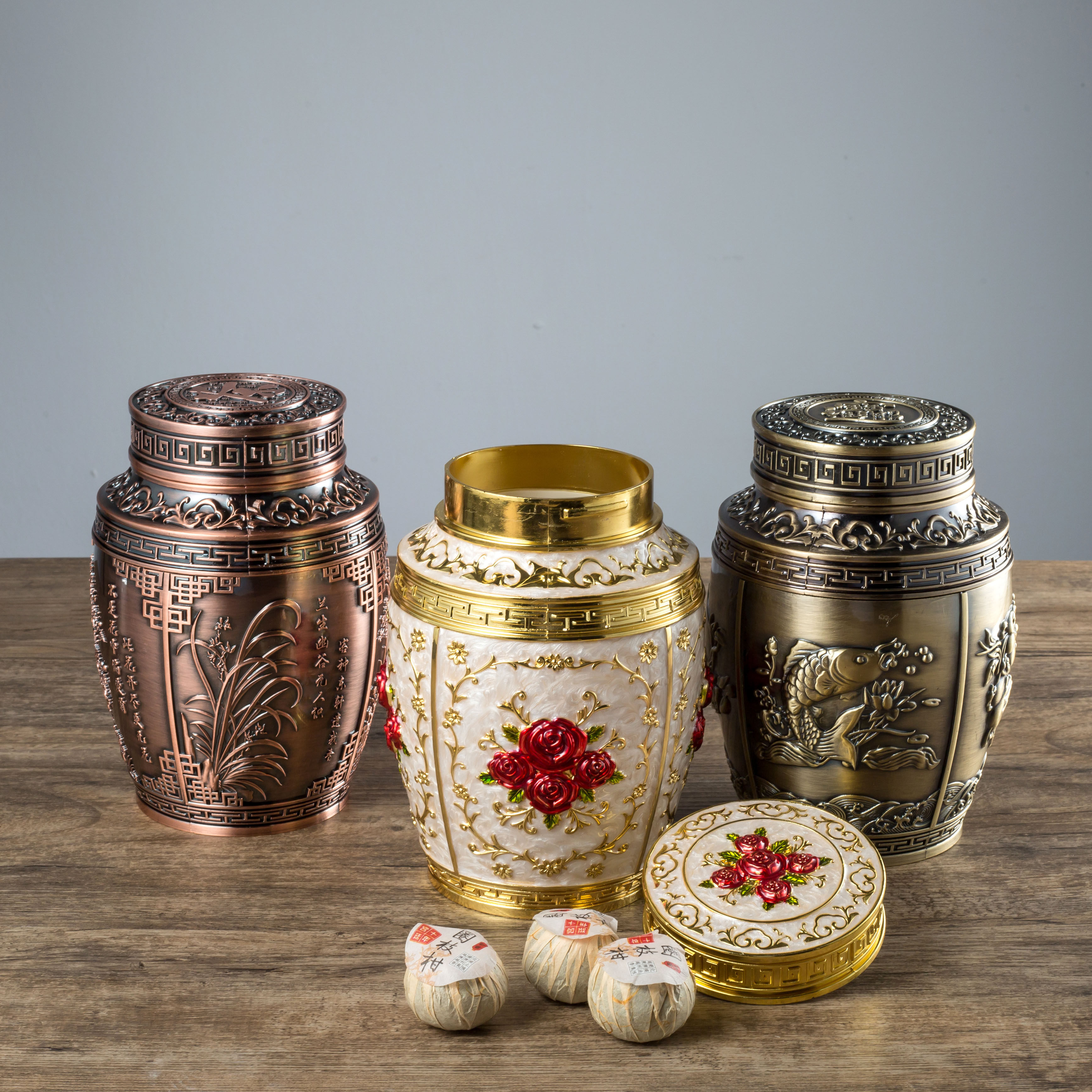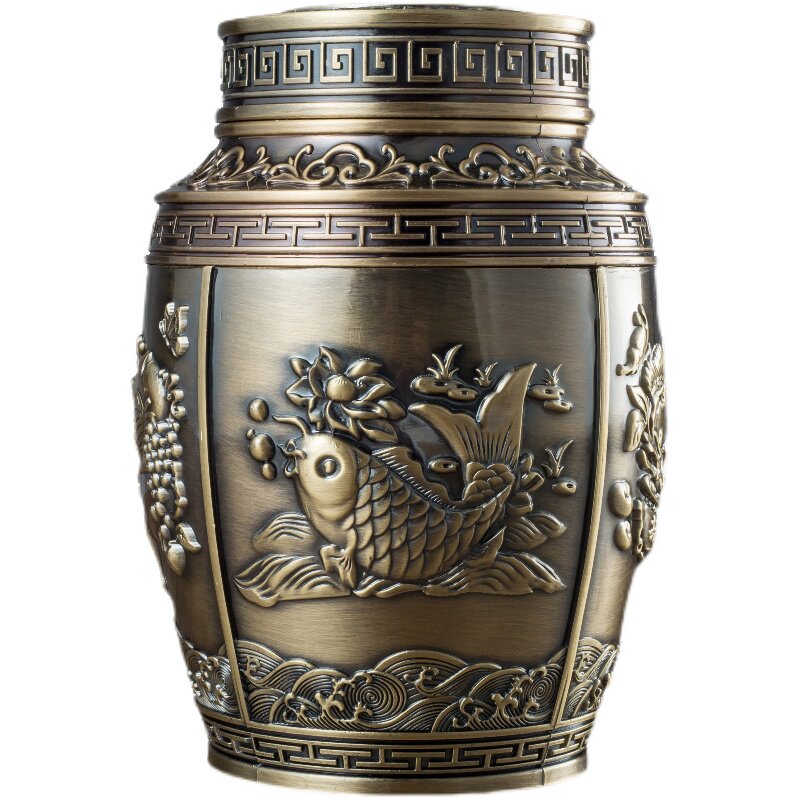 Tea cans sealed cans high-end tin ornaments home creative new Chinese style moisture-proof antique stainless steel sealed iron cans