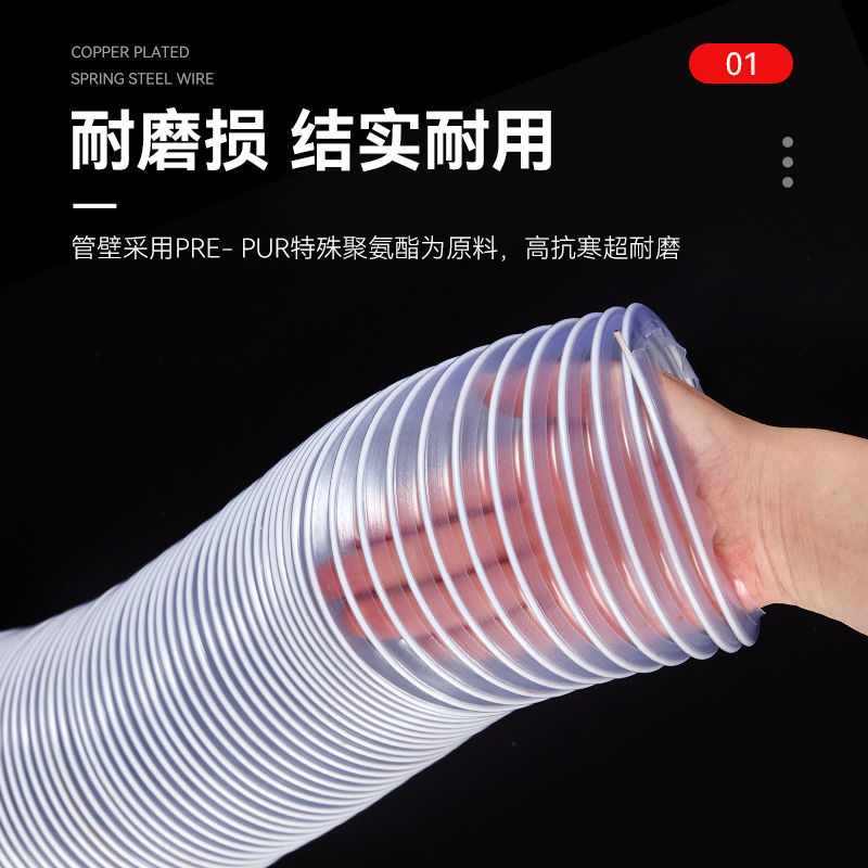 PVC transparent exhaust hose steel wire suction pipe carpentry vacuum dust removal pipe dust collection pipe plastic telescopic corrugated pipe
