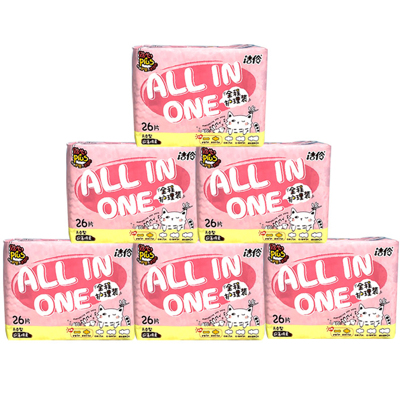 Jieling sanitary napkin girl full care ultra-thin breathable combination pack 6 packs of 156 mixed aunt towel for day and night use