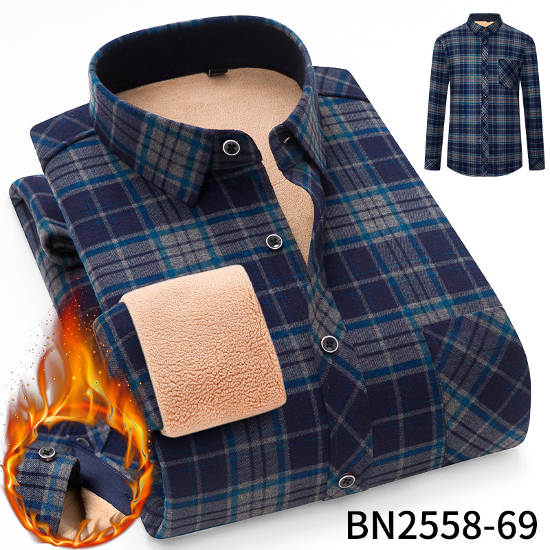 Rav Laurenma ball winter fever clothes men's youth printed plus suede thickened shirt plaid middle-aged casual dad dress blouse