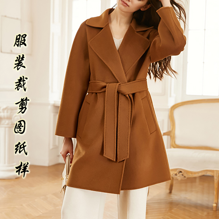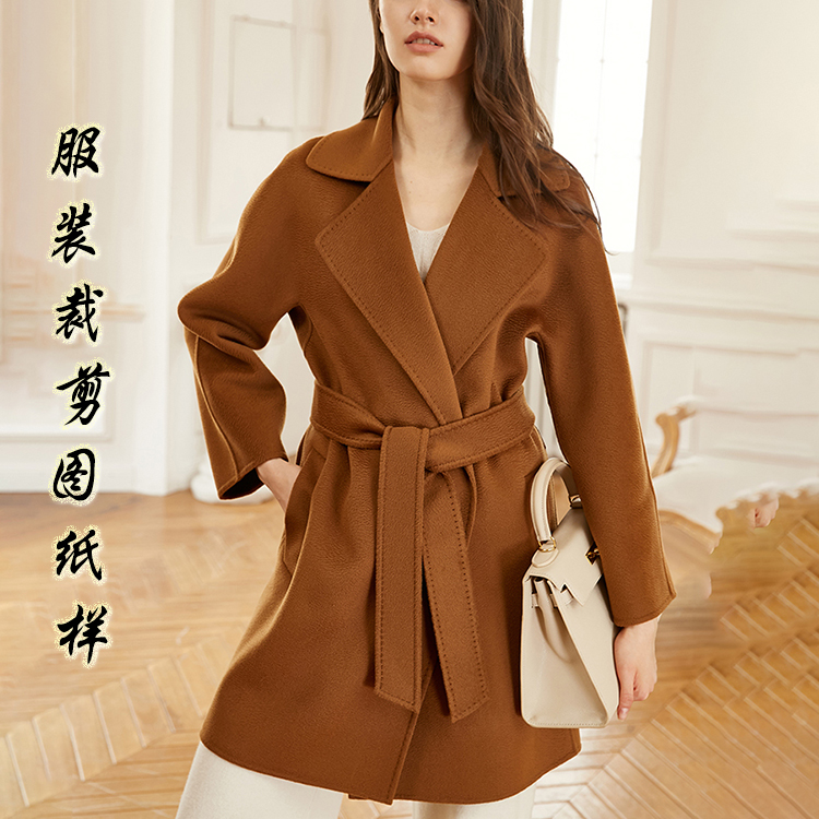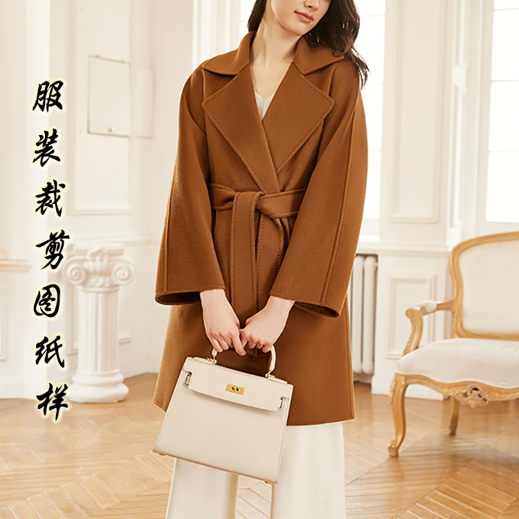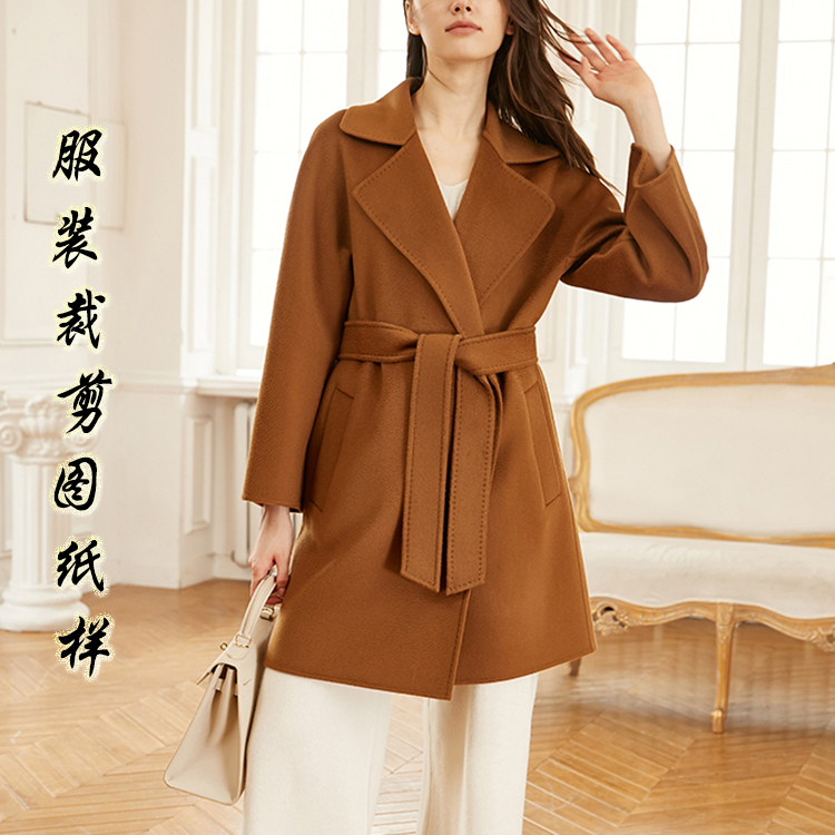 Loose double - sided cashmere coat paper sample 2023 autumn and winter big female hair - style wools and long new model crop drawing