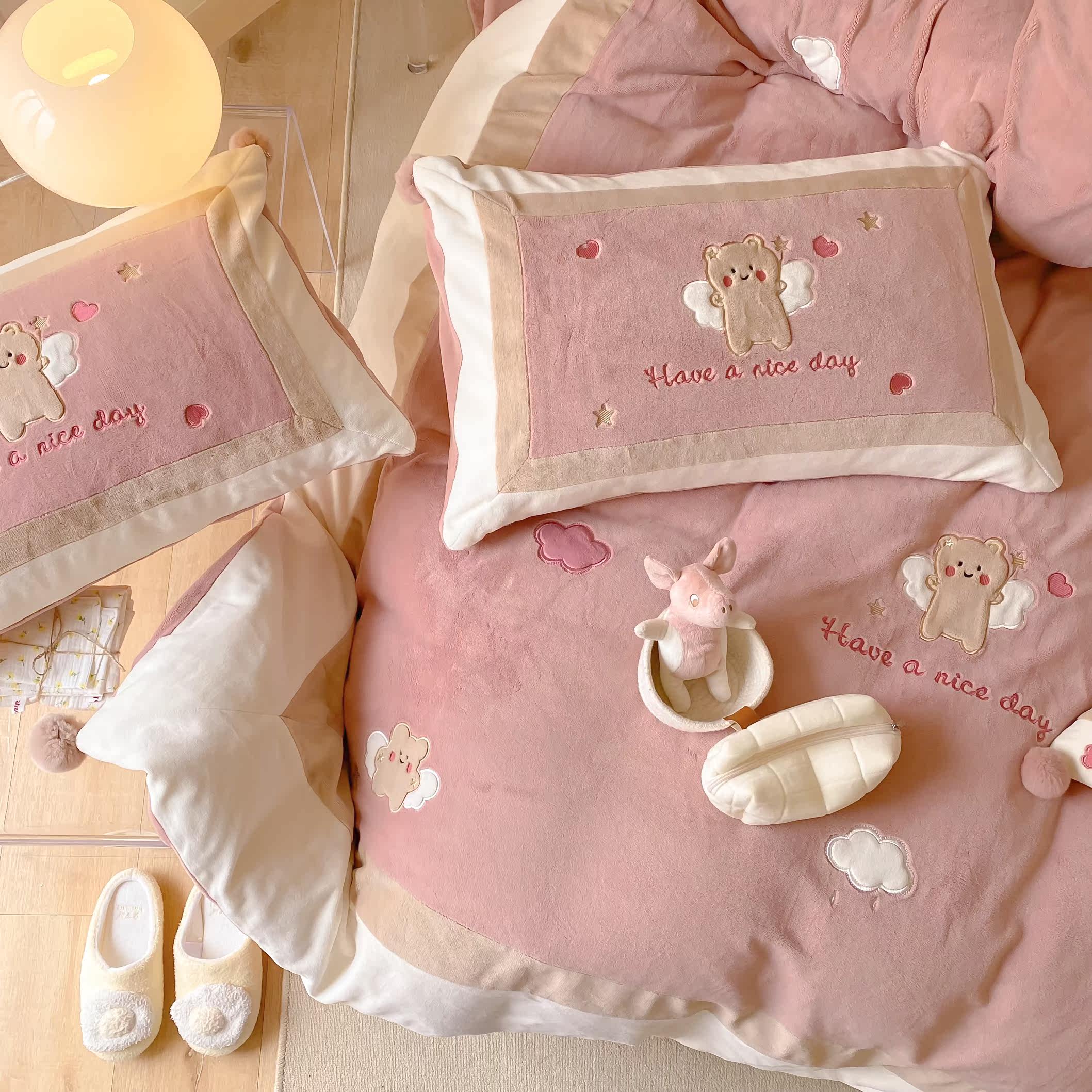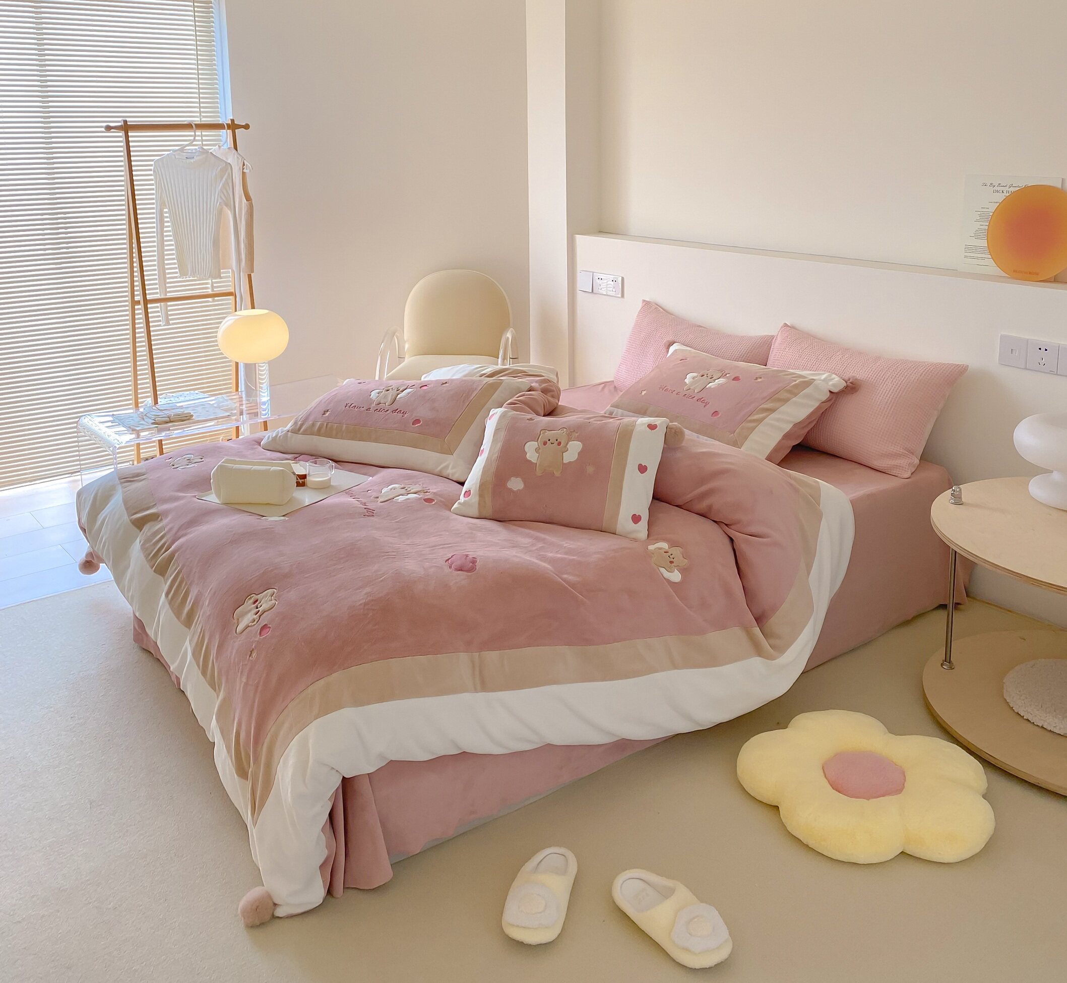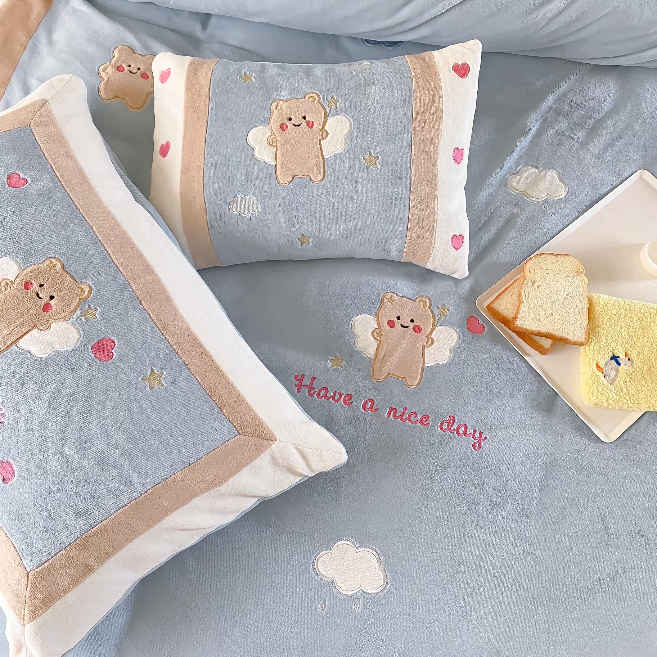 Small cute 230 gr thickened double face cartoon milk suede 4 pieces soft and pro-skin without static hair