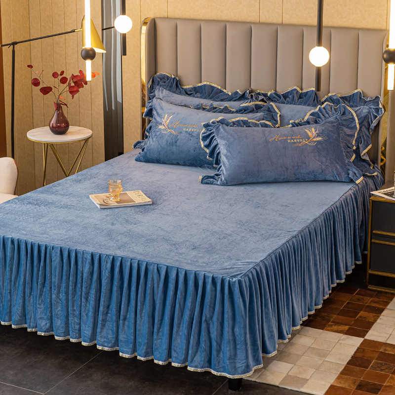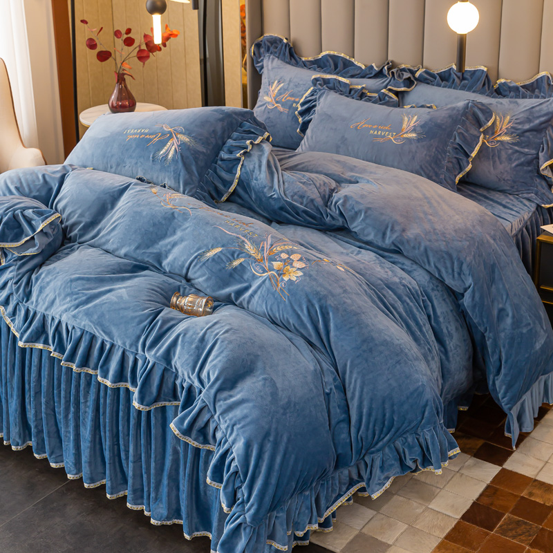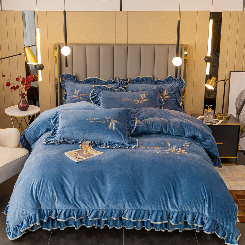 Winter thickened crystal suede 4 pieces double face coral suede quilt cover with suede bed skirt flannel bed cover bedding