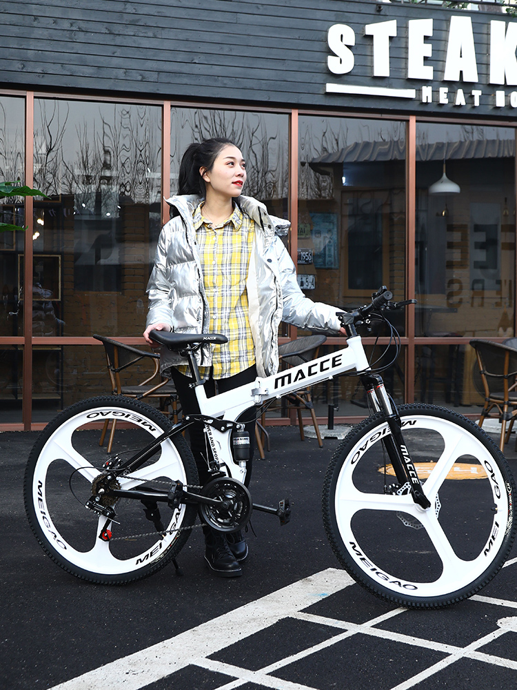 Mountain folding bike adult men's and women's racing off-road variable speed one wheel double shock absorber student light bike