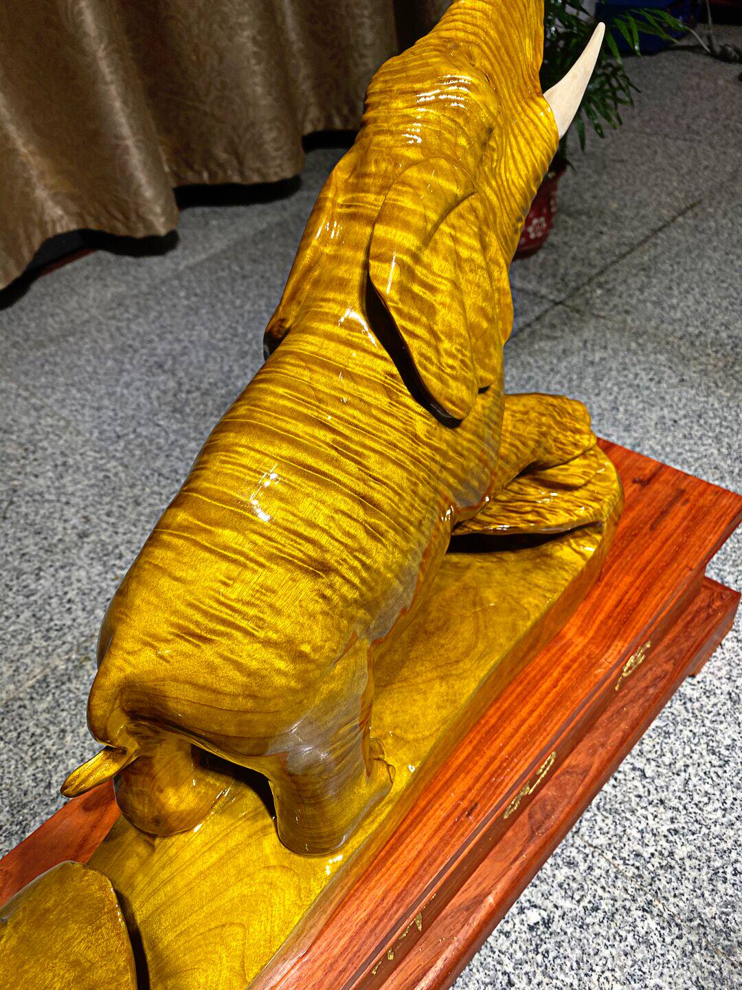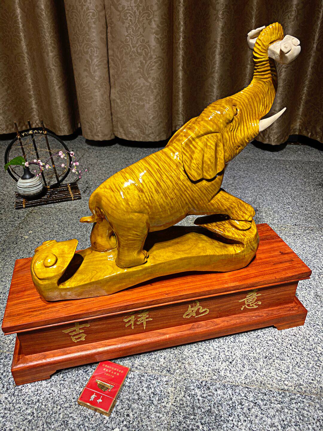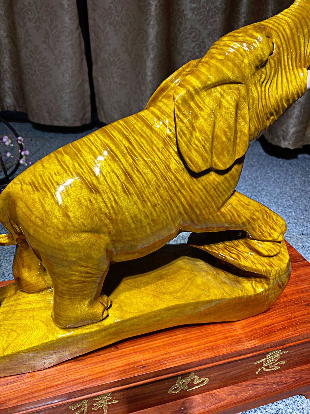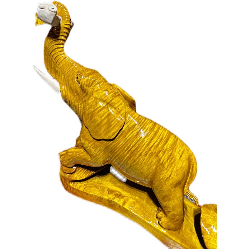 Golden Silk Nangmu Carved U Wood Auspicious Ruyi Elephant Bull Shady Wood Pendulum root sculptures Guanyin Millver Animals