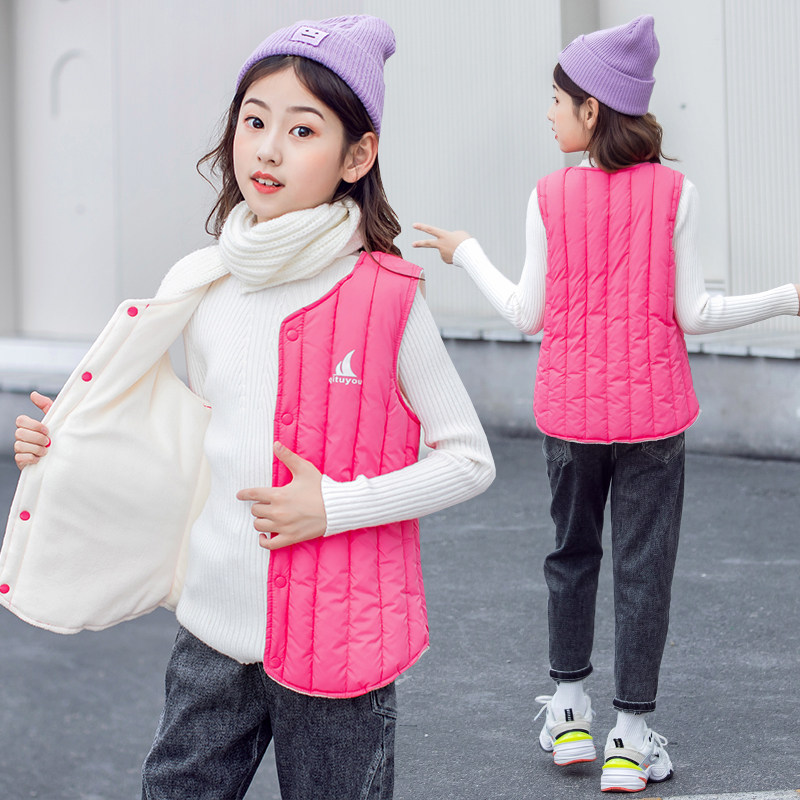 Girls vest spring and autumn foreign pie 2021 down cotton lamb velvet vest vest outer wear inner wear student warm winter