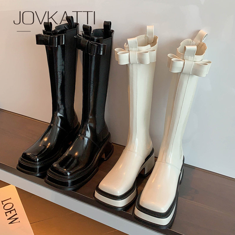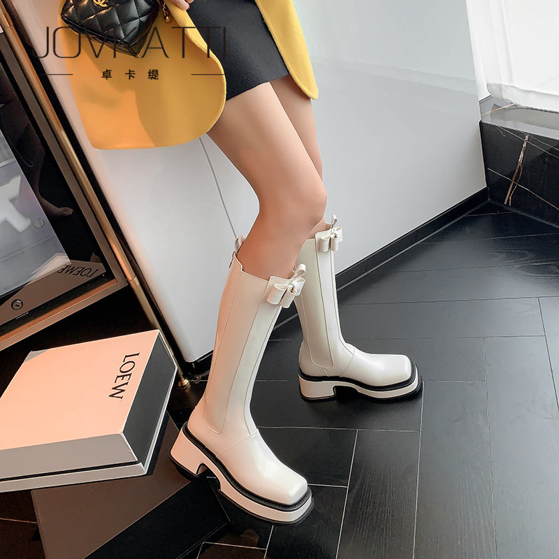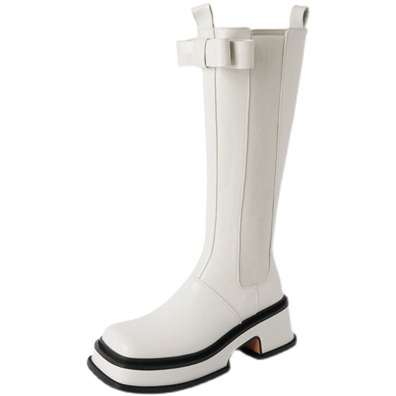Thick-soled long-tube knight boots women's bow-knot waterproof platform high-heeled boots 2022 new autumn square-toed high-heeled boots