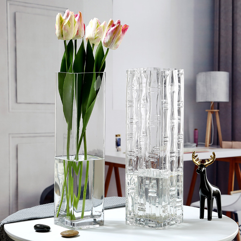 Square mouth glass vase with rose lily tulip sunflower flowers gypsophila dry flower 30 high 40cm50