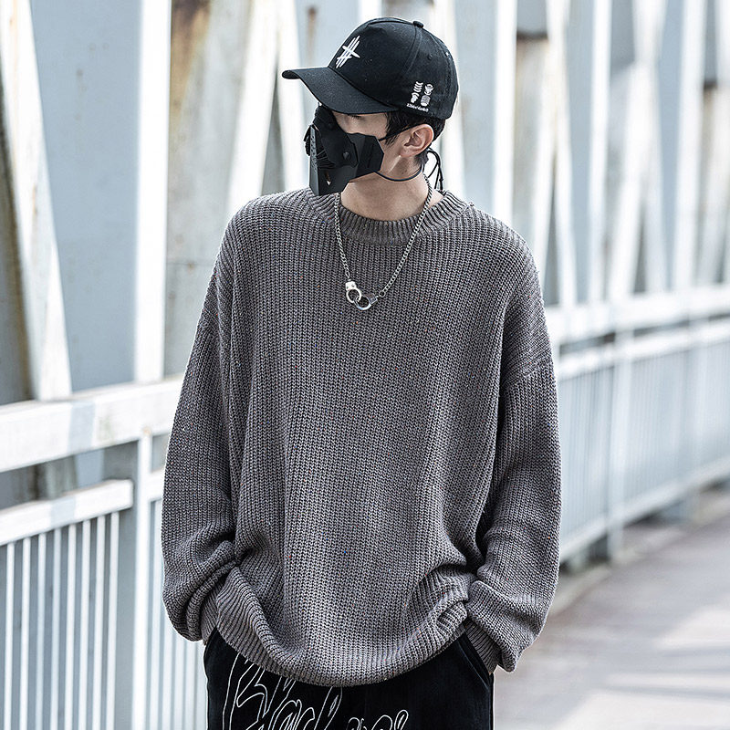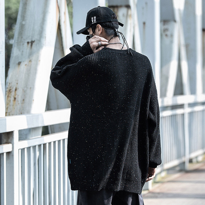 Small Binder Tide Round Collar Fur Coat Men's Autumn Winter Base Relaxed Casual Full of Star printed Long sleeves Knitted Sweatshirt-Taobao