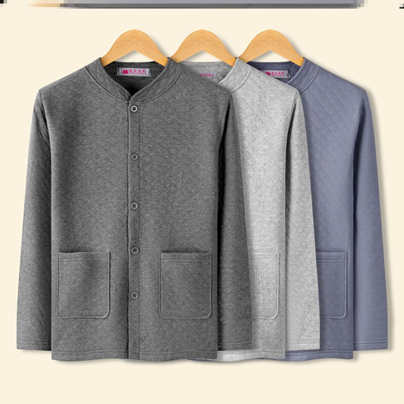 Middle-aged and elderly cardiovert fever clothes winter three-layer clip cotton men's single piece autummy blouse for old man thickened cotton autumn clothes