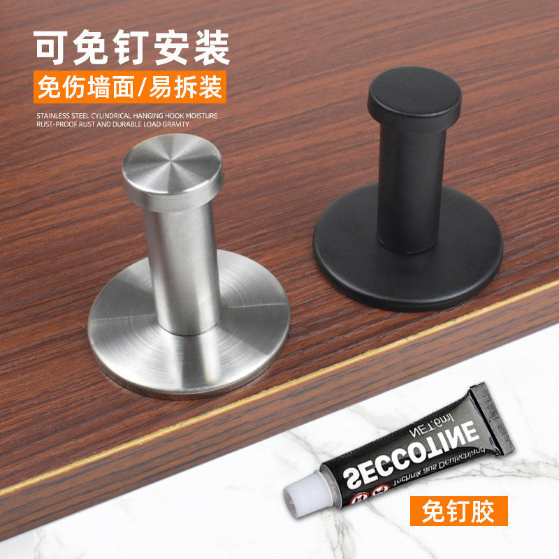 Cylindrical hook brushed silver (pack of 1)-with liquid-free nail cylindrical hook black (pack of 1)-with liquid-free nail cylindrical hook brushed silver (pack of 2)-with liquid-free nail cylindrical hook black (pack of 2)