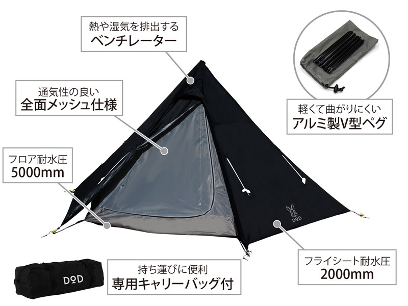 Japan DOD Outdoor Camping Tent Pyramid Spire personally polyester fiber T5-47-BK multiperson camping
